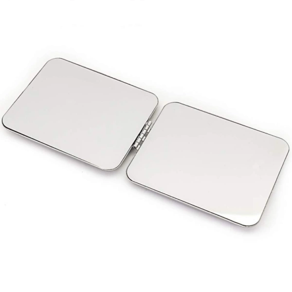 Складное зеркальце от Sergio Valentini. Элегантное и небьющееся. Зеркальные элементы изготовлены из пластин идеально полированного металла. Упаковано в индивидуальную коробку.