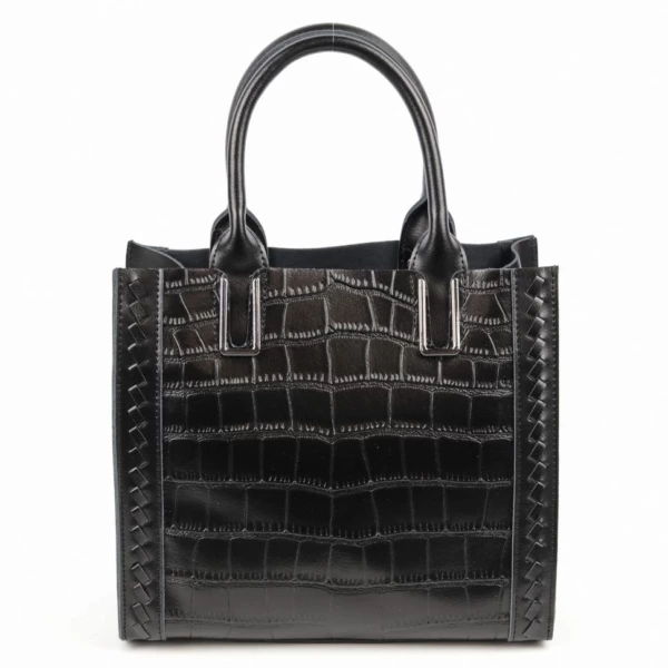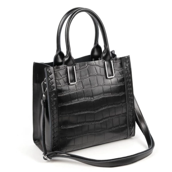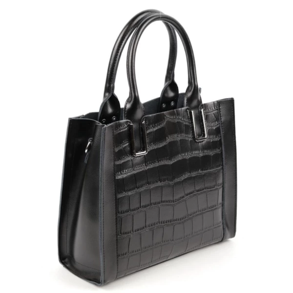 Женская кожаная сумка тоут под крокодила 1549-220 Блек