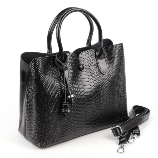 Женская кожаная сумка тоут под змею 5321-220 Блек