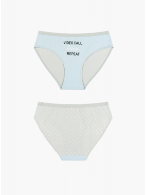 Женские трусы от торговой марки Индефини. Трусы-слипы из хлопка, голубого цвета с принтом спереди, серого цвета с принтом в горошек, на мягкой резинке, средней посадки. Состав: 95% хлопок 5% эластан_x000D_ _x000D_ Производитель: Indefini