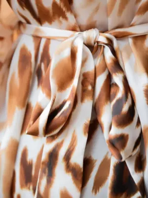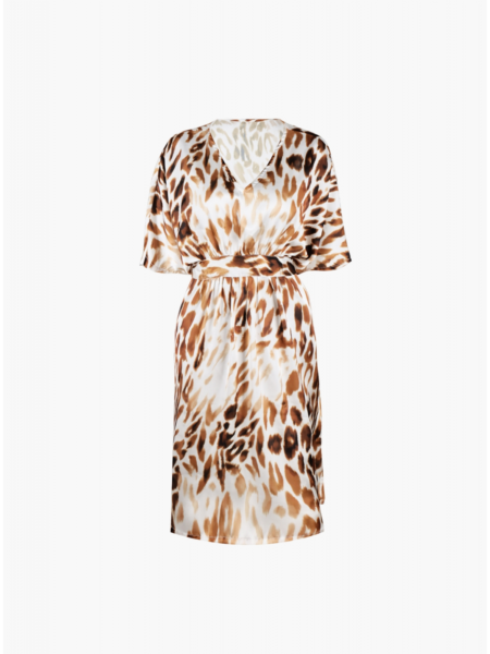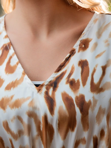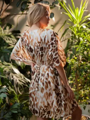 Женская пляжная туника из полиэстера выполнена из легкого и дышащего материала, она быстро сохнет и обладает отличной воздухопроницаемостью. Изделие имеет свободный крой, который не сковывает и обеспечивает свободу движений. В области декольте расположен V-образный вырез. Регулирующий пояс позволяет регулировать степень облегания модели к телу под личные предпочтения. Украшением туники является анималистичный принт. Состав: 100% Полиэстер._x000D_ _x000D_ Производитель: Indefini Материал: Полиэстер