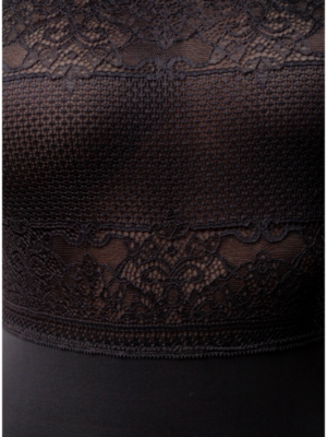 Боди от торговой марки Индефини. Кружевное боди из полиамида, черного цвета, с кружевными вставками и обрамлением, без рукавов, без косточек и без Push-up, приталенное. Состав: 85% полиамид 15% эластан_x000D_ _x000D_ Производитель: Indefini