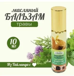 Масляный ингалятор на травах от Green Herb применяетсяпри простудных заболеваниях, от насморка, для очищения дыхательных путей, приукачивании во время поездок в транспорте, при обмороках и головных болях, приукусах насекомых. Содержит несколько видов тайских трав, ментоловоемасло, камфору и т.д.Помогает быстро избавиться от сонливости тайскиймасляный ингалятор на травах (на работе, во время вождения машины, на учебе).Рекомендуется людям, занятым тяжелой умственной деятельностью, при вожденииавтотранспорта. Состав:Смесь эфирных масел и тайских трав Объем: 10 мл Применение:Вдыхать ингалятор, втирать в височную область, крыльяноса или шею.