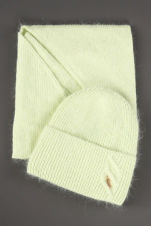 Комплект шапка с косынкой. Шапка: с отворотом на флисовом подкладе, размер 56-58. Косынка: длина 103 см, ширина 62 см, одинарная.