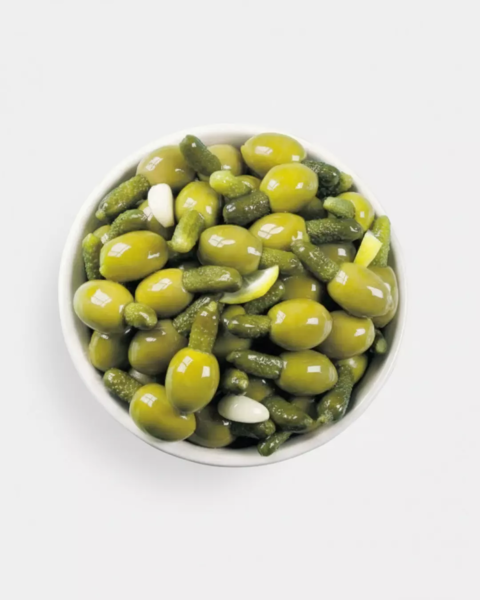 Оливки с мини корнишонами Греко, 1000 мл