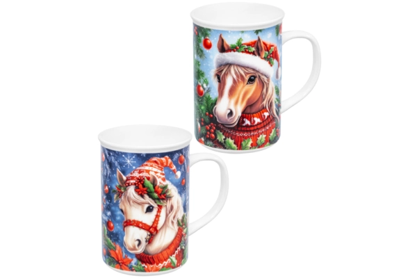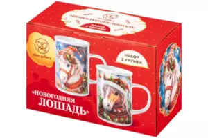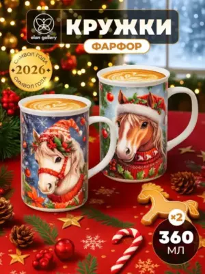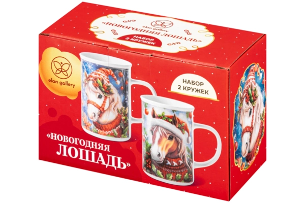 Набор 2 кружек 360 мл 11,5*7,5*11,5 см "Новогодняя лошадь", фарфор Состав: Фарфор