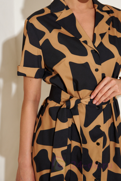 Платье из вискозной плательной ткани прямого силуэта с застёжкой на пуговицы. Втачной короткий рукав с отворотом. Вырез горловины оформлен английским воротником, который визуально сделает фигуру стройнее и подчеркнет красивую линию груди. В комплекте пояс из основной ткани.