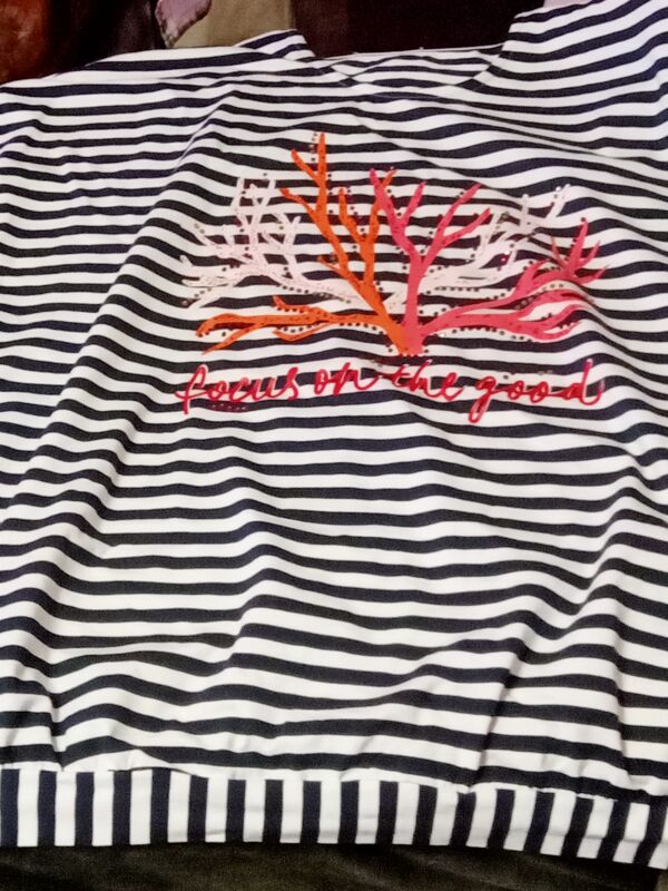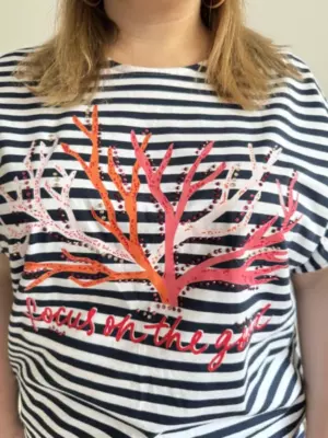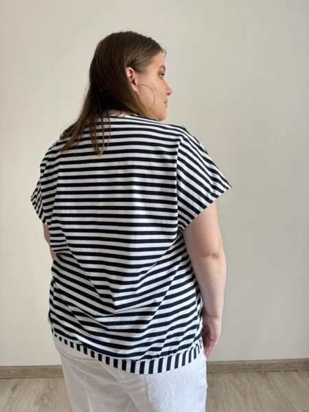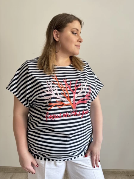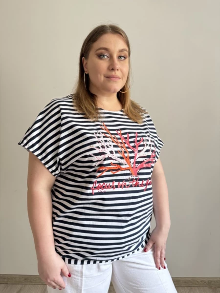 Футболка женская в синюю полоску с принтом, мягкий трикотаж, круглый вырез AVERI