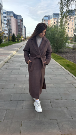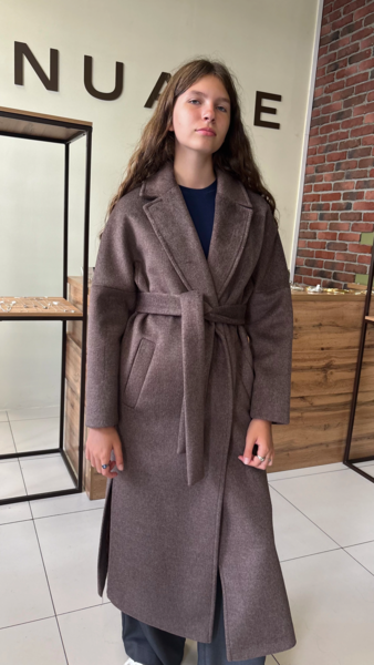 Пальто женское демисезонное, прямого силуэта, с поясом, притачная подкладка.