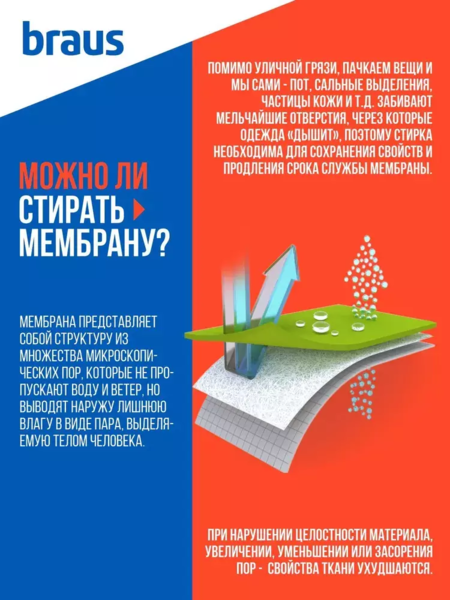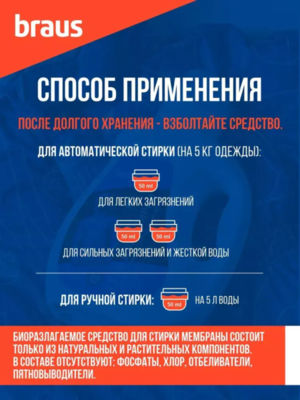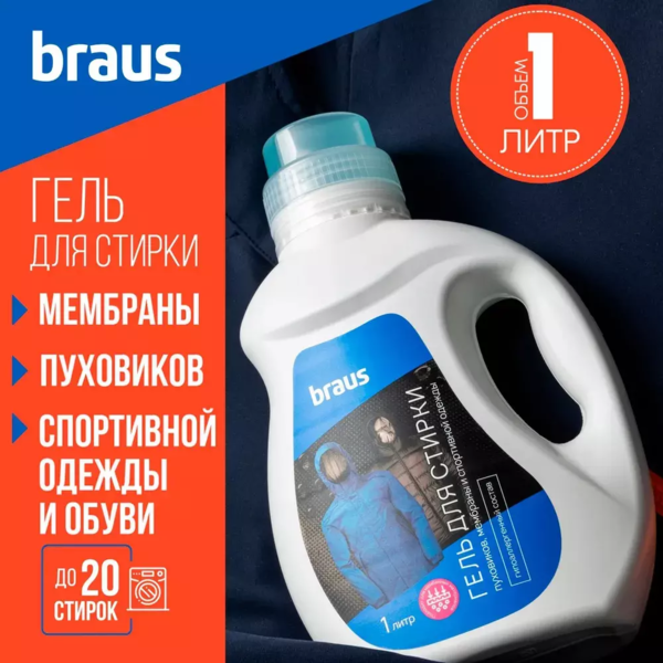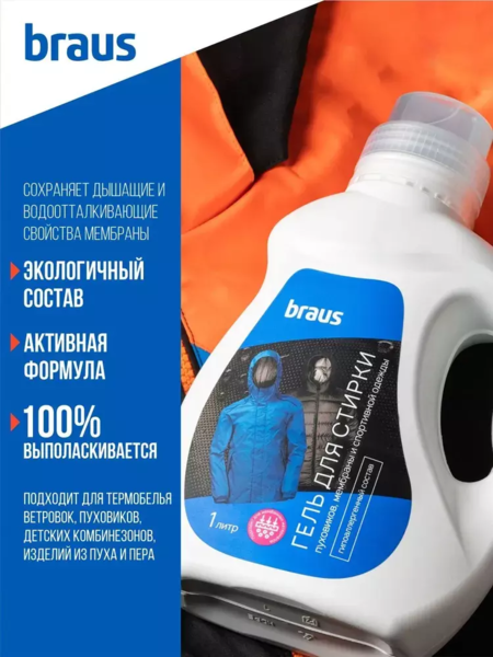 BRAUS Гель д/стирки пуховиков, мембран, спортивной одежды 1000 мл