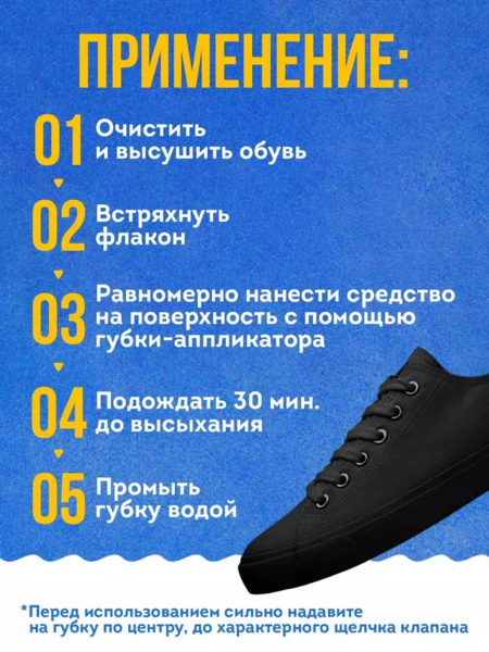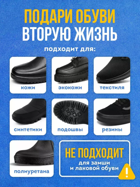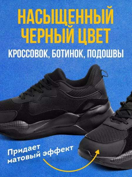 Краска для восстановления черного цвета Вашей обуви всего за 5 минут. Подходит для черной подошвы, для обуви из черной кожи, для обуви из текстиля. Продукт превосходно закрашивает потертости и обновляет цвет черной подошвы.