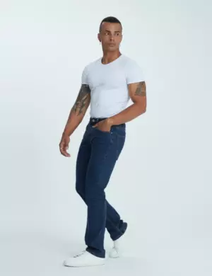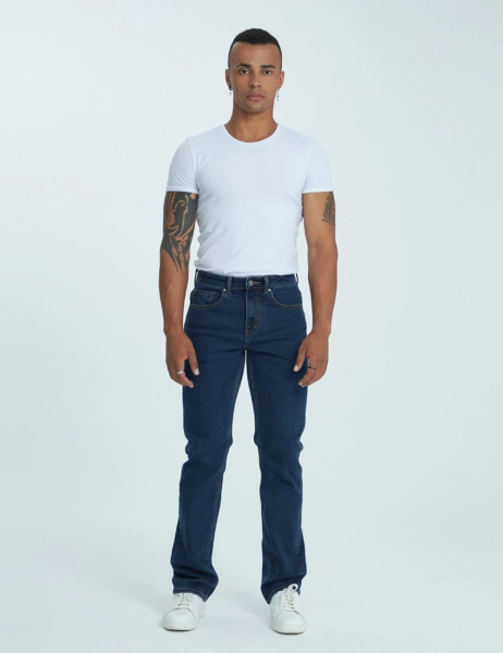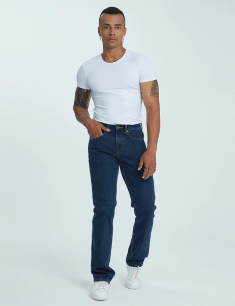Мужские утеплённые джинсы из денима на тонкой флисовой основе. Классическая модель Comfort с пятью карманами из плотного денима без потёртостей и эффектов состаривания в синем цвете с контрастной отстрочкой. Модель универсальная – прямой крой со свободным облеганием, средняя комфортная посадка, полноценная длина. Утеплённые джинсы отлично сохраняют тепло даже при намокании. Деним на флисовой основе обладает приятной фактурой, воздухопроницаемостью, износостойкостью, малой сминаемостью и деформацией, прост в уходе. Благодаря наличию эластана джинсы очень комфортны, не сковывают движений и сохраняют форму длительное время. Джинсы Comfort fit подходят для классических и повседневных образов на любой случай жизни. Незаменимы в гардеробе современного мужчины в холодное время года., 83% Хлопок, 16% Полиэстер, 1% Эластан, ВЬЕТНАМ, Рост 182 см Объем груди 103 см Объем талии 79 см Объем бедер 95 см На модели размер W 30 L 34