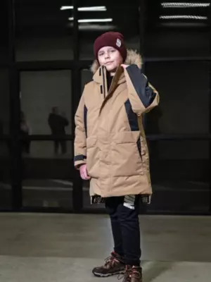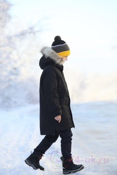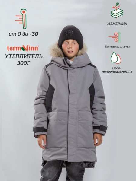 Зимняя парка детская для мальчика сочетает в себе модные тенденции и продуманныe детали для практичности и комфорта. Удлиненное польто с эффектом oversize декорирована контрастными по цвету вставками и кокеткой сзади изделия. Втачной капюшон с объемной натуральной опушкой на молнии, которую можно легко снять. Рукав прямого кроя с эластичными манжетами. Объем снизу рукава можно отрегулировать патой на липучке. Центральная молния парки подростковой прикрыта широкой ветрозащитной планкой и имеет двухсторонний бегунок. Объемные накладные карманы с боковым входом. Стеганая подкладка выполнена из полиэстера. Куртка парка зимняя для детей в сочетании с утеплителем TermoFinn в объеме 300 гр. и прочной не продуваемой мембранной тканью, обеспечит подростку школьнику комфортную прогулку зимой до минус 30 с сильным ветром.