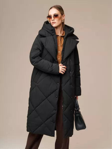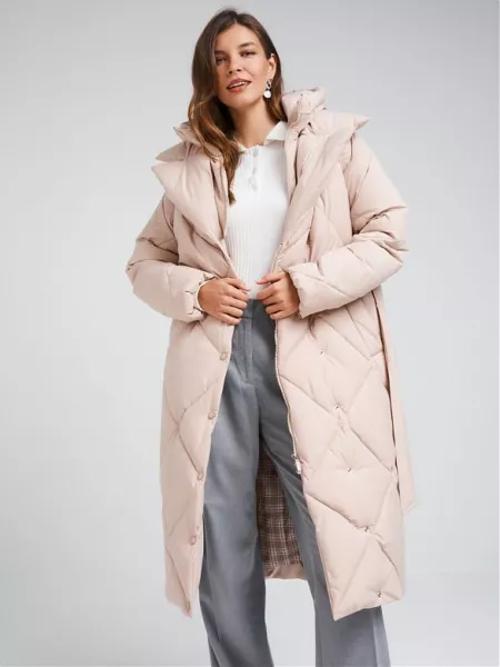 Двубортный пуховик прямого силуэта со съемным капюшоном, который крепится на потайные кнопки. Горловина изделия оформлена воротником с лацканами. Рукав со спущенным плечом. По низу рукава идет внутренняя ветрозащитная утяжка на резинке. Застежка на молнию и кнопки в тон изделия. В плаще имеются два кармана с листочками на магнитах и один внутренний карман. В комплекте с изделием идет пояс из основной ткани. Ткань плащевая с водоотталкивающей пропиткой. Утепление Био пух 250 гр. Рекомендуемый температурный режим (от 0°С до -20°С). Длина изделия: 115 см Длина рукава: 64 см.