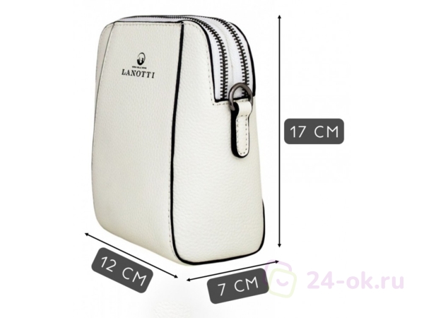 Размер: 12/7/17 Вес товара без упаковки: 0,3 Состав: натуральная кожа Вид застежки: молния Описание: Сумка кросс-боди. В комплекте кожаный ремень с возможностью регулировки. Два основных отделения на молнии. Внутри: карман для мелочей и дополнительный карман на молнии для аксессуаров. Является одним из лидеров продаж благодаря удобству и универсальности! Сумка хорошо держит форму. Подходит как под классический так и под спортивный стиль.