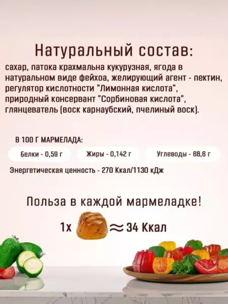 Мармелад желейно-фруктовый "С фейхоа" на пектине 0,19 кг картон (5 мес)