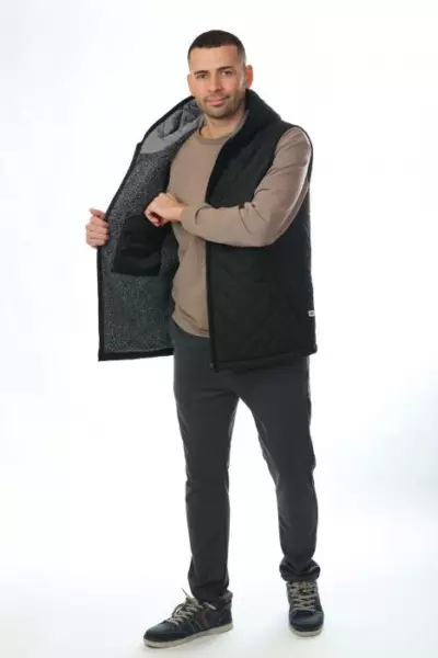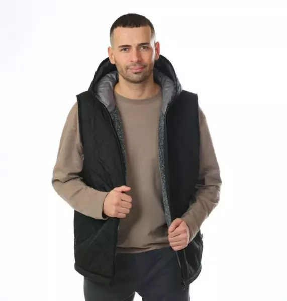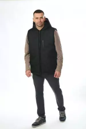 Описание: Жилет мужской с капюшоном, подкладка из текстильного материала с ворсом из натуральной шерсти