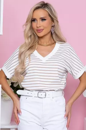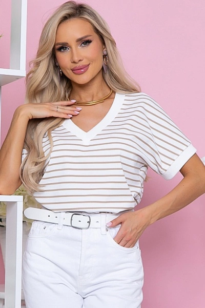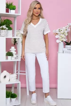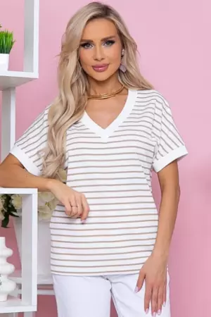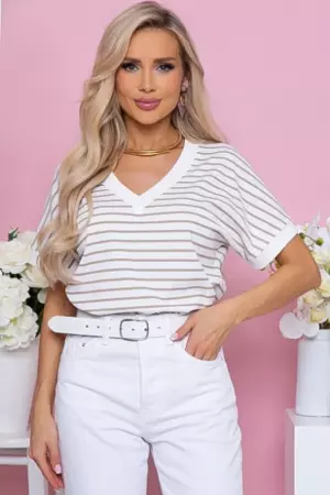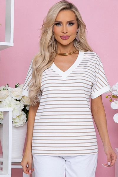 Джемпер с V-вырезом горловины из трикотажного полотна рибана в полоску(мелкая лапша производство Турция) свободного силуэта.Горловина и манжеты оформлены хлопковой,трикотажной рибаной(производство Турция)