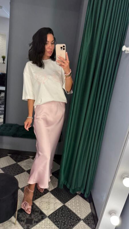 Замеры в 44 размере: длина 74 см, длина рукава 25 см, пог 61 см, пот 61 см, поб 61 см