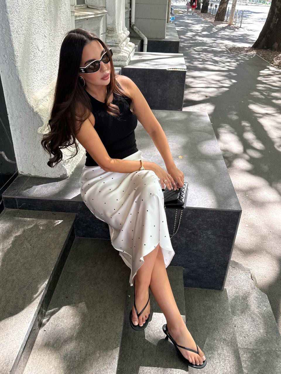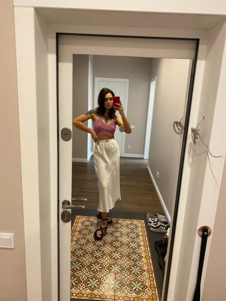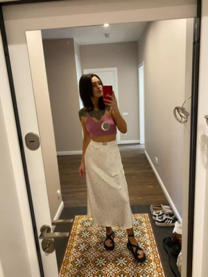 Юбка из струящейся ткани. Пояс на резинке, из новой весенней коллекции 2024. Район 81%, Полиэстер 15%, Эластан 4%