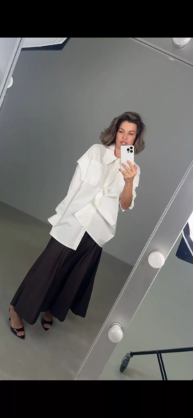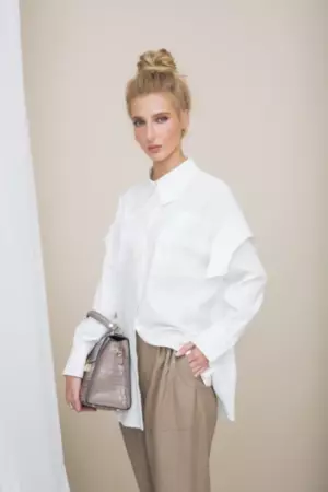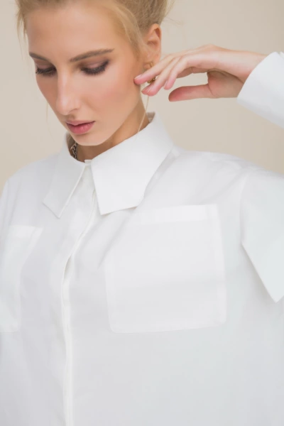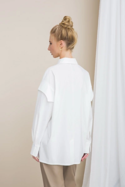Блуза из натуральной ткани из новой коллекции 2025. Длина по спинке - 75 см. Длина рукава от проймы - 56 см (спущенное плечо). Хлопок 100%