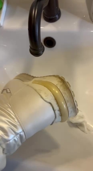 - Очистить окрашиваемую поверхность обуви, высушить.