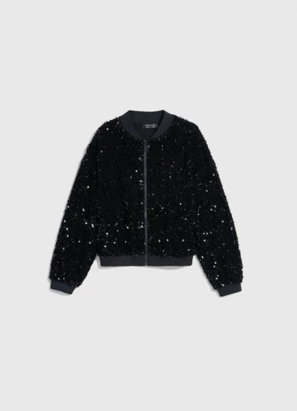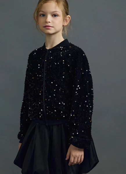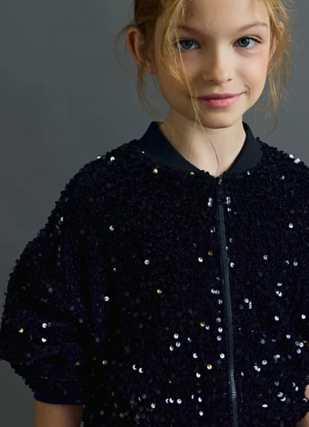 Бомбер из велюра с пайетками для девочек