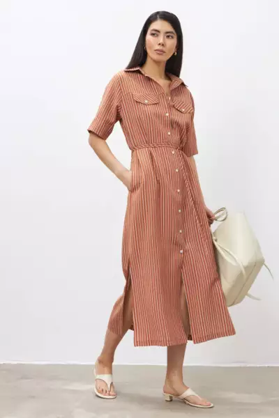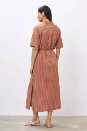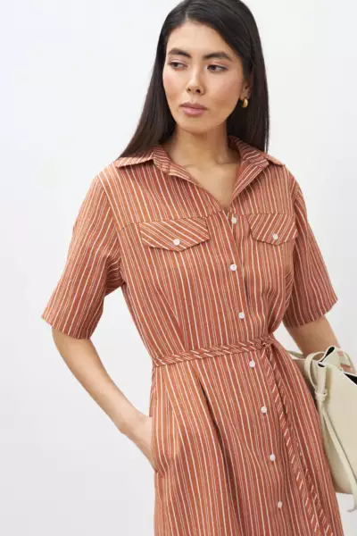 Стильное комфортное платье из вискозного полотна. Платье свободное, рукав втачной прямой. Воротник рубашечный на стойке. На спинке кокетка, карманы в боковых швах. Застежка на пуговицы и петли. В комплекте узкий пояс из основной ткани.
