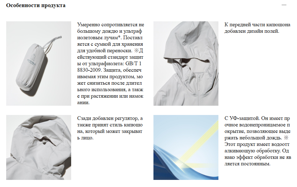 Защита от ультрафиолета ※1Стандарт исполнения: GB/T 18830-2009. Защита, обеспечиваемая этим изделием, может снизиться при длительном использовании, а также при растяжении или намокании.