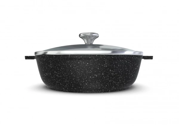 186540 Жаровня со стекл. крышкой 4л «Каменная» Черный гранит