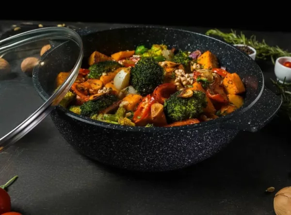 Благодаря этому жаровня многофункциональна и удобна в эксплуатации, в ней можно жарить, тушить, варить, томить, пассеровать и запекать.