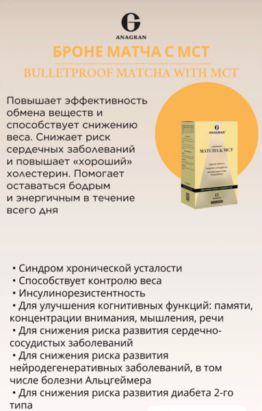 Матча запускает быстрый импульс бодрости, а MCT масло обеспечивает устойчивую энергию.