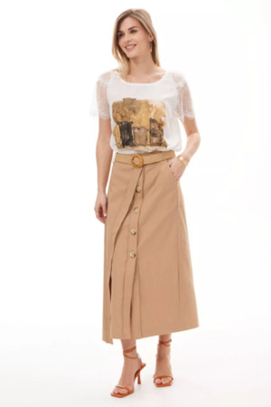 Стильная молодежная блуза из французского крепа. Модель свободной формы, рукав реглан из французского кружева. Перед модели декорирован стильной дизайнерской печатью.