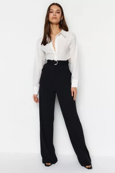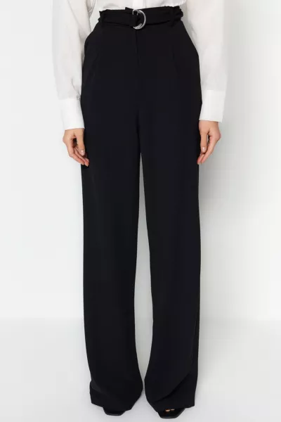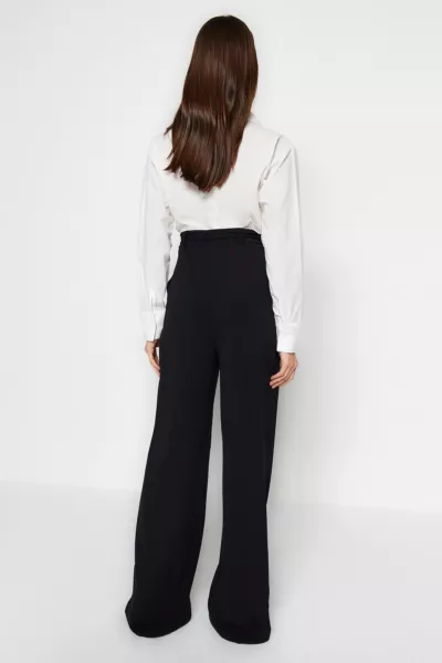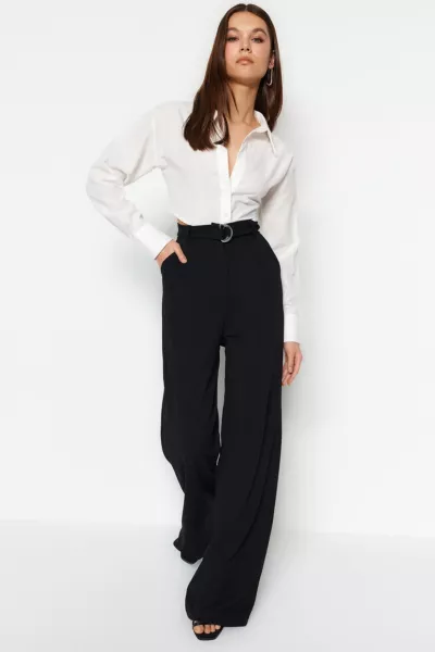 Артикул Siyah Kemerli Wideleg/Geniş Paça Yüksek Bel Smart Krep Kumaş Örme Pantolon TWOSS23PL00330