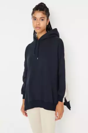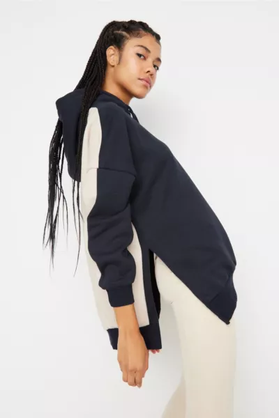 Артикул Lacivert Renk Bloklu Geniş Kalıp İçi Polarlı Örme Spor Sweatshirt TWOSS22SW0074