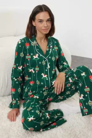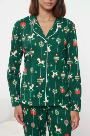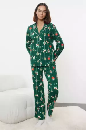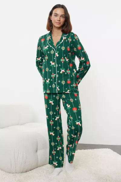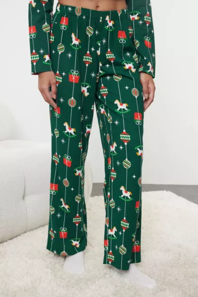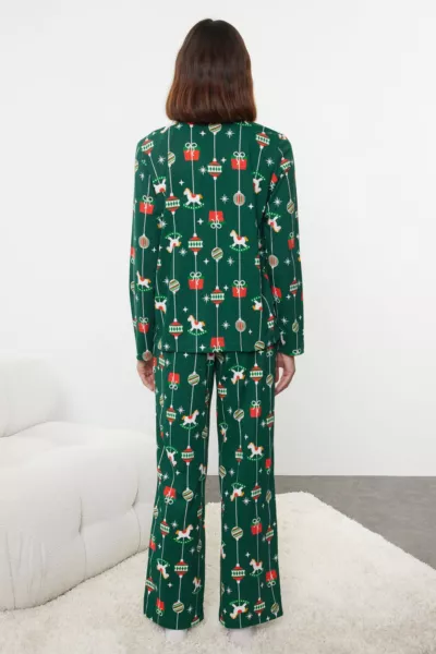 Артикул Yeşil %100 Pamuklu Yılbaşı Temalı Örme Pijama Takımı THMAW25PT00172