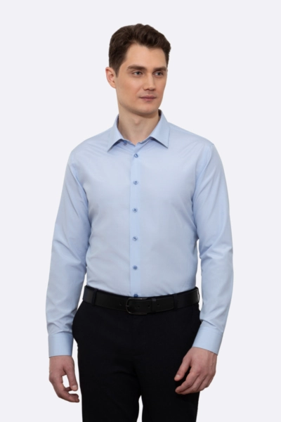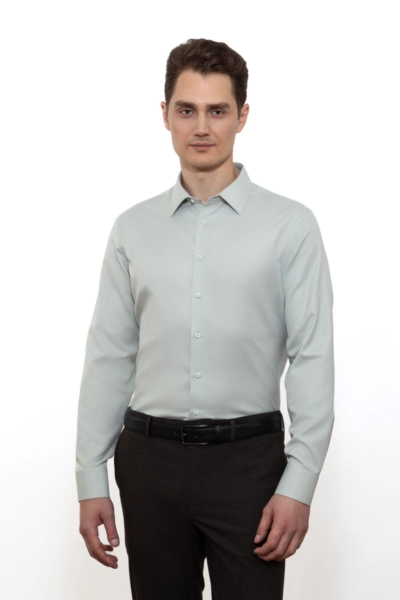 Сорочка приталенного силуэта светлых цветов и оттенков будет актуальна в повседневной жизни каждого мужчины. Едва уловимый рисунок на ткани обогащает основной цвет сорочки, придает этой модели дополнительный шик.