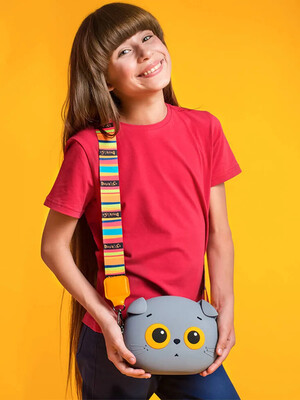 Сумочка кросс-боди и её главный акцент — выразительная мордочка Басика с медовыми глазками, маленьким носиком, усами и аккуратными, загнутыми вперед ушками.