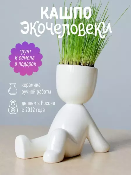Экочеловеки уже в предвкушении лета. Отправляемся загорать вместе с Пляжником) Главное не забудьте крем для загара. Пляжник- керамическая фигурка белого цвета в комплекте с семенами и грунтом, все для творчества и выращивания.