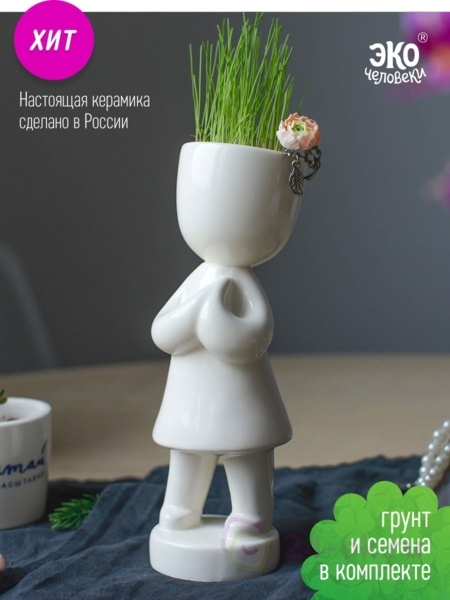 Комплект: Фигурка, грунт, семена и инструкция для посадки