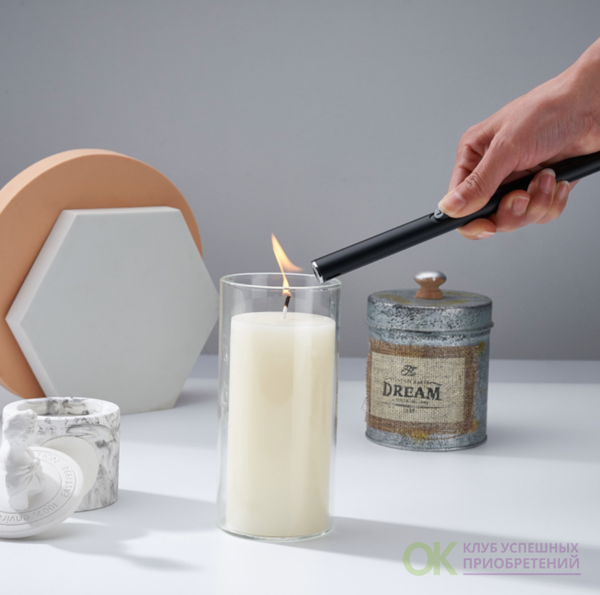 удобно использовать когда свеча в банке прогорела и спичками или обычной зажигалкой сложно достать