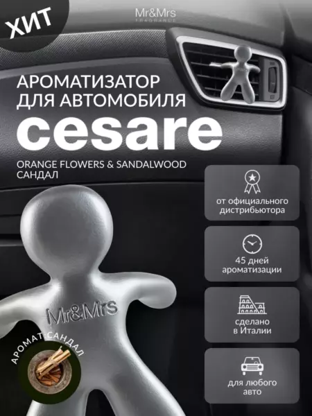 Ароматизатор для автомобиля CESARE стальной металлик ORANGE FLOWERS & SANDALWOOD Сандал