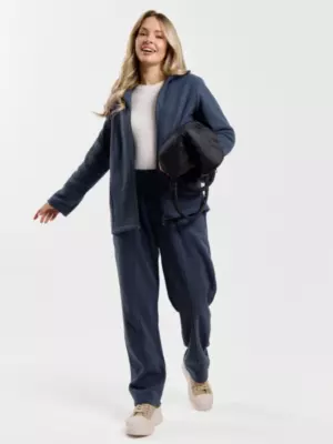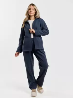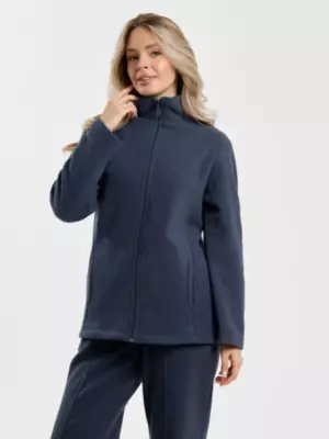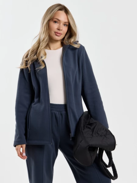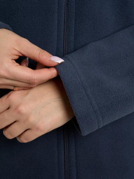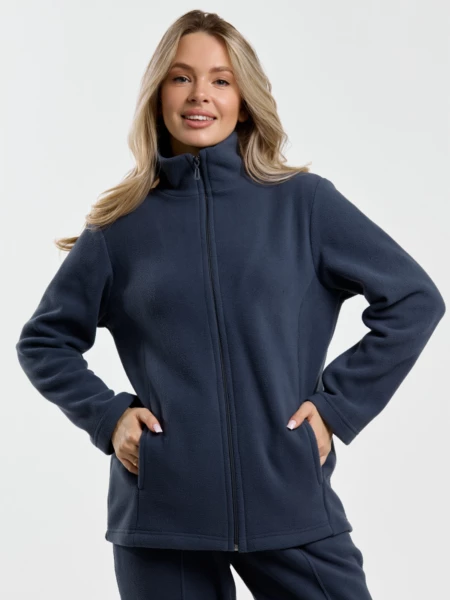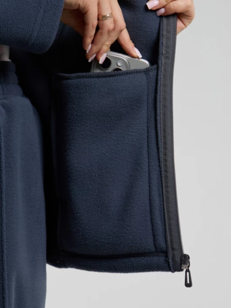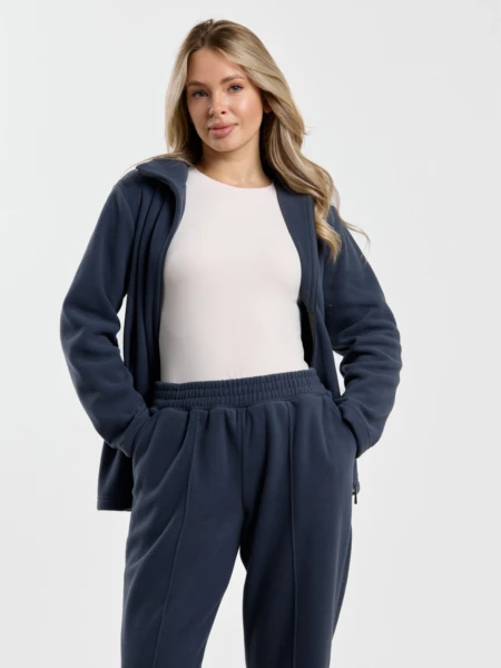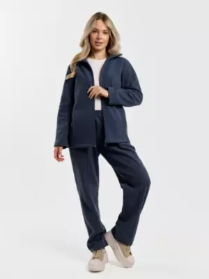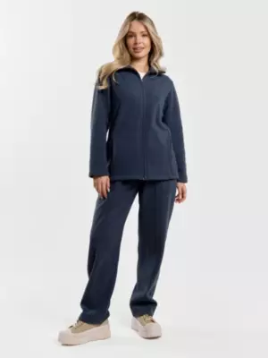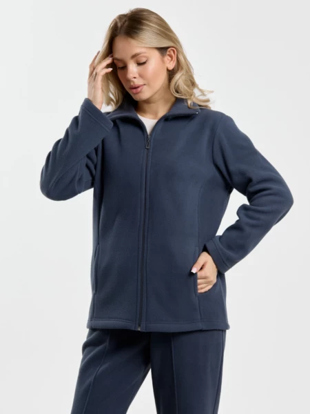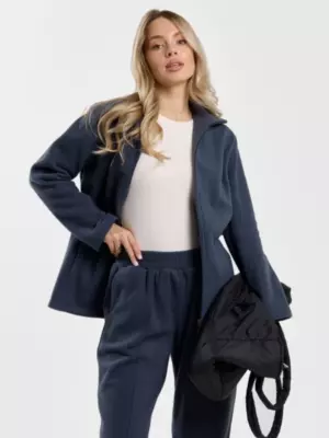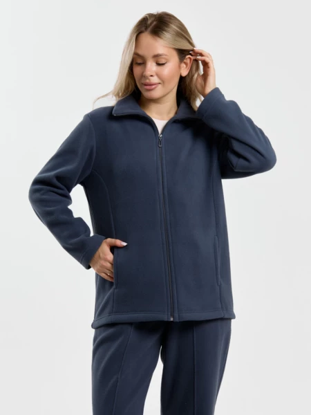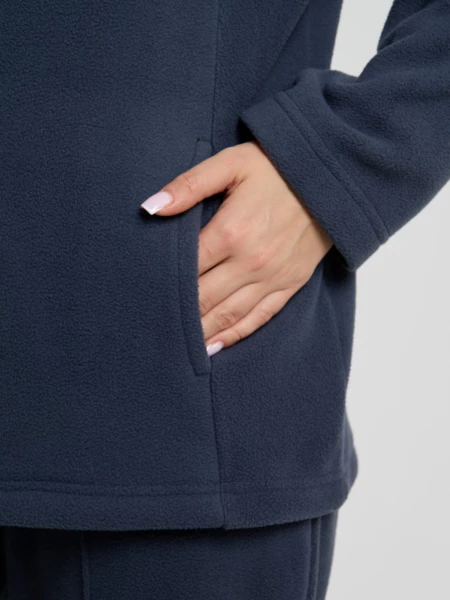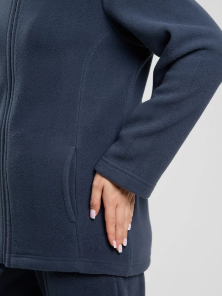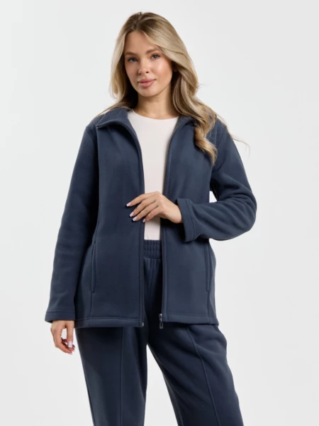 Костюм молодежный из гладкокрашенного трикотажного полотна «флис», Толстовка - полуприлегающего силуэта, с длинными втачными рукавами, воротником «стойка», карманами в рельефных швах, центральной бортовой застежкой на тесьму «молния». Брюки длинные, полуприлегающего силуэта, на притачном поясе с эластичной тесьмой внутри и карманами в боковых швах. Передние половины застрочены поцентральным линиям, низ брюк обработан подгибкой с вложением эластичной тесьмы и регулируется по ширине с помощью фиксаторов.