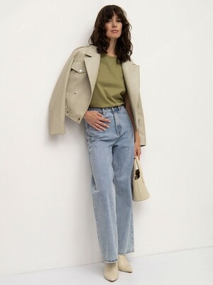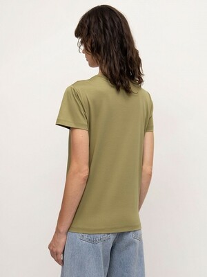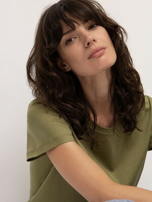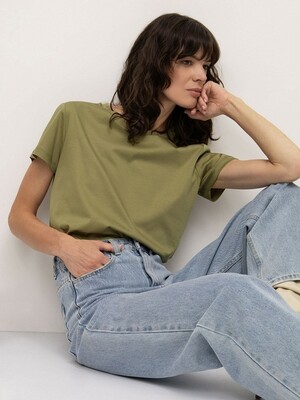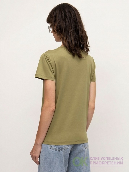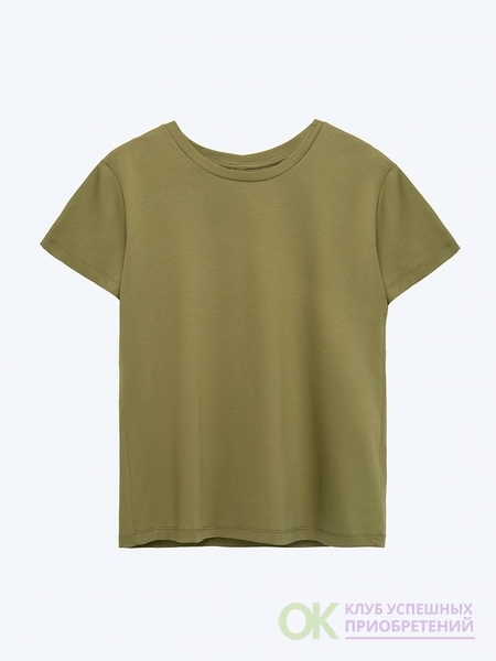 Базовая трикотажная футболка цвета хаки. Выполнена из натурального хлопка. Модель прямого силуэта с круглым вырезом станет основой множества комфортных повседневных образов. Отлично сочетается с денимом. Длина: 63 см. Силуэт: прямой Рост модели: 175-178 См