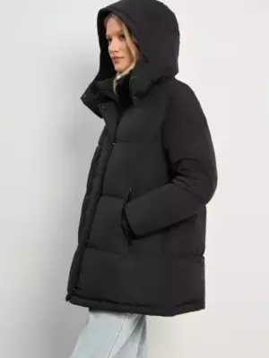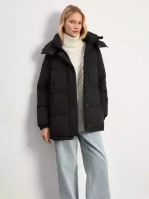 Пуховик в чёрном цвете утеплён наполнителем с 80% натурального утиного пуха и 20% пера. Рассчитан на температуры до -15°C. Модель имеет универсальный прямой крой. Дополнена комфортным капюшоном. Застёгивается на удобные кнопки и молнию. Цвет: черный Силуэт: прямой Сезон: демисезон Рукав: длинный Застёжка: молния Подкладка: 100% нейлон Рост модели: 175-178 См 100% полиэстер