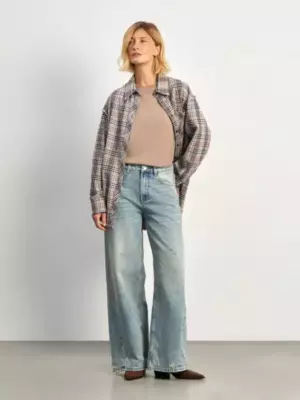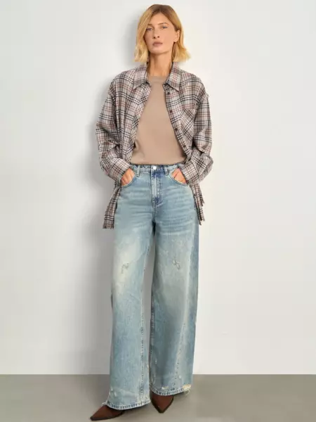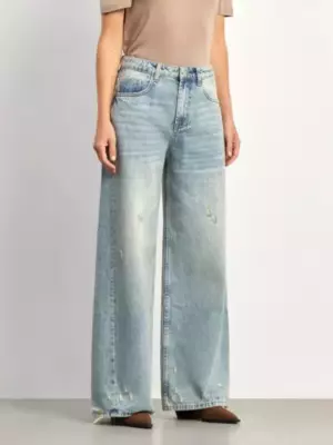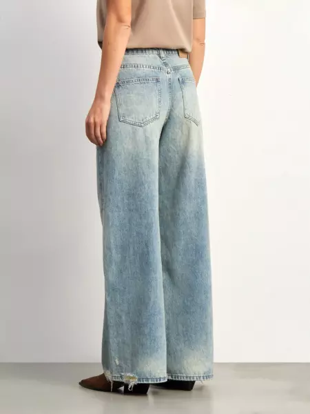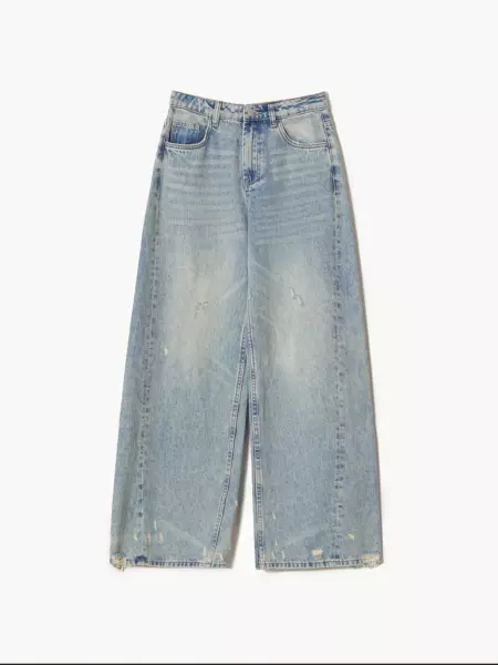 Широкие джинсы трендовой варки с вывернутым швом, модным рваным эффектом и потёртостями добавят гранжевый аккорд в повседневные образы. Выполнены из качественного хлопка в светло-синем цвете. Хорошо сочетаются с фланелевыми рубашками и базовым трикотажем. Длина: 106 см. Цвет: синий Силуэт: широкий Сезон: демисезон Застёжка: молния Рост модели: 175-178 См 100% хлопок