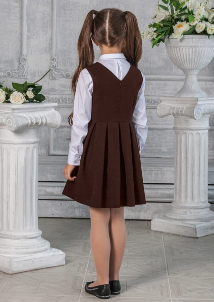 146р. 1951 руб._x000D_ 140р. 1896 руб._x000D_ 128р. 1786 руб._x000D_ 122р. 1733 руб._x000D_ Очаровательный сарафан для девочек школьного возраста, мягкие складки подчеркивают силуэт, на спинке застежка на молнию. Состав: 22% вискоза, 8% эластан, 70% полиэстер