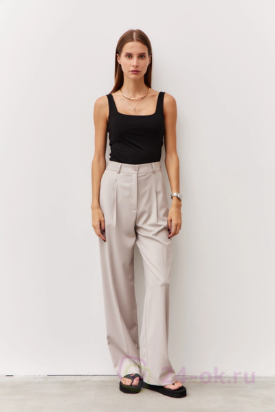 Джемпер прилегающего силуэта из трикотажной хлопковой ткани. Вырез горловины и пройма рукава обтачены коротким топом с эластичной тесьмой по низу.