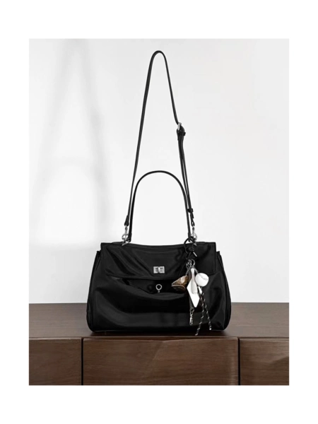 Вид: Классические сумкиСумки с клапаном, Цвет: Черный, Цвет фурнитуры: Серебро, Размер: M, Форма: Мягкая, Производство: Китай, Материал: Текстиль; нейлон