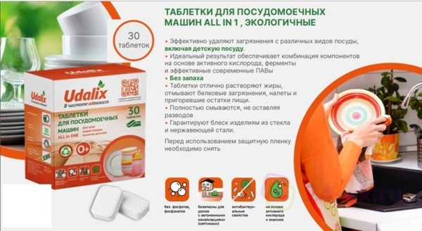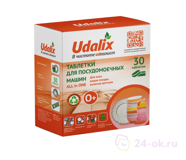 Udalix Таблетки для посудомочных машин ALL IN 1, экологичные, 30 таблеток